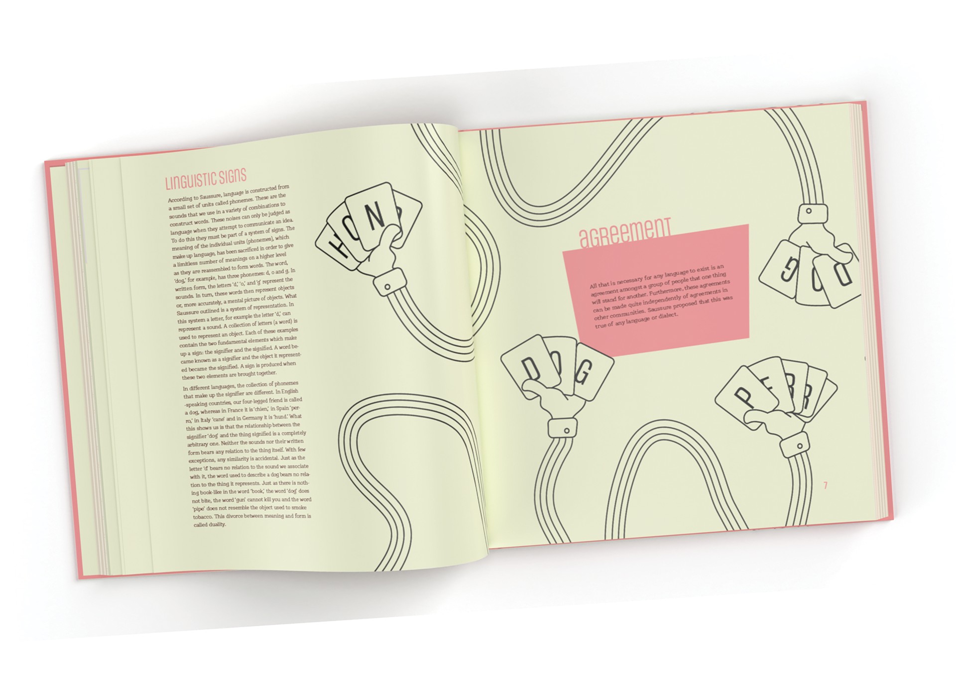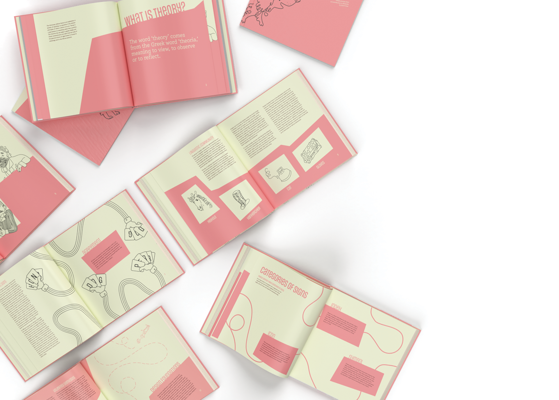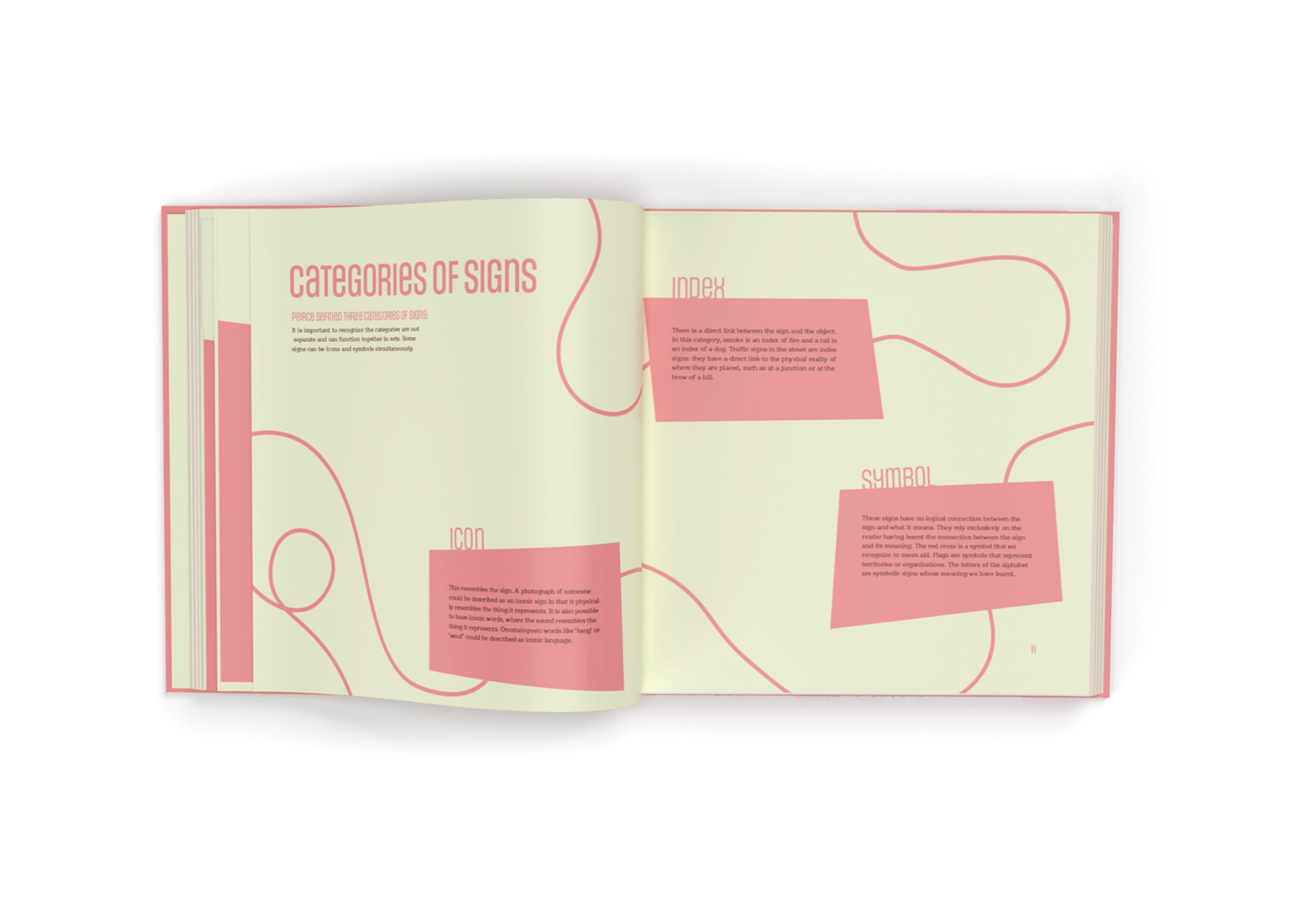 These excerpts from David Crow's Visible Signs: An Introduction to Semiotics in the Visual Arts were compiled to make this funky coffee table book. The goal was to introduce the theory of semiotics through an easily digestible reading experience.