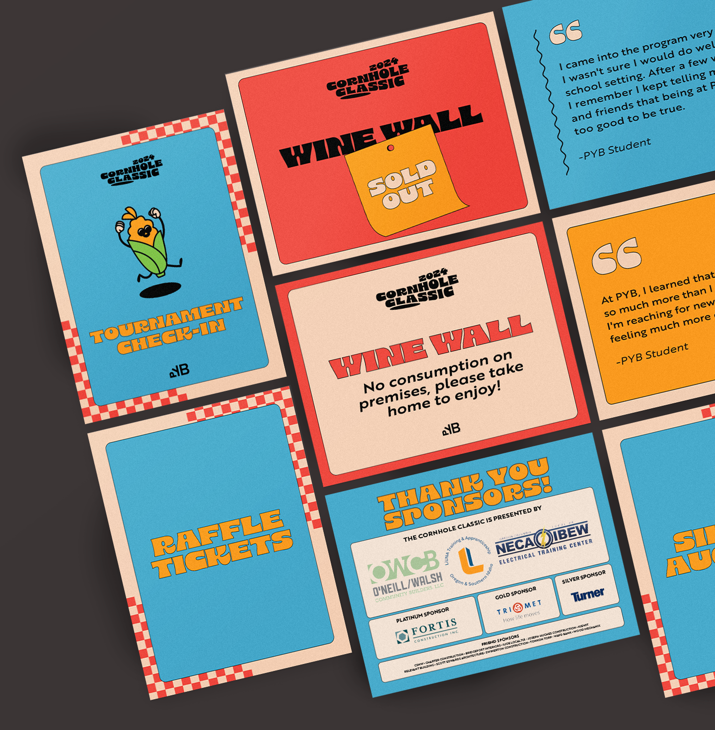 PYB was looking to rebrand their Cornhole Classic fundraiser with a fresh take on the event. We collaborated to create a refreshed brand, posters, social media overhaul, and brochures for the event. Client: Portland Youth Builders Role: Art Director, Designer, Illustrator
