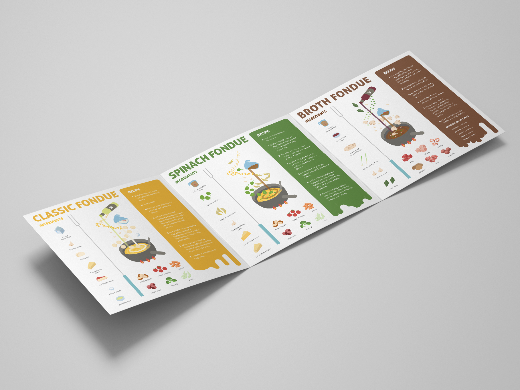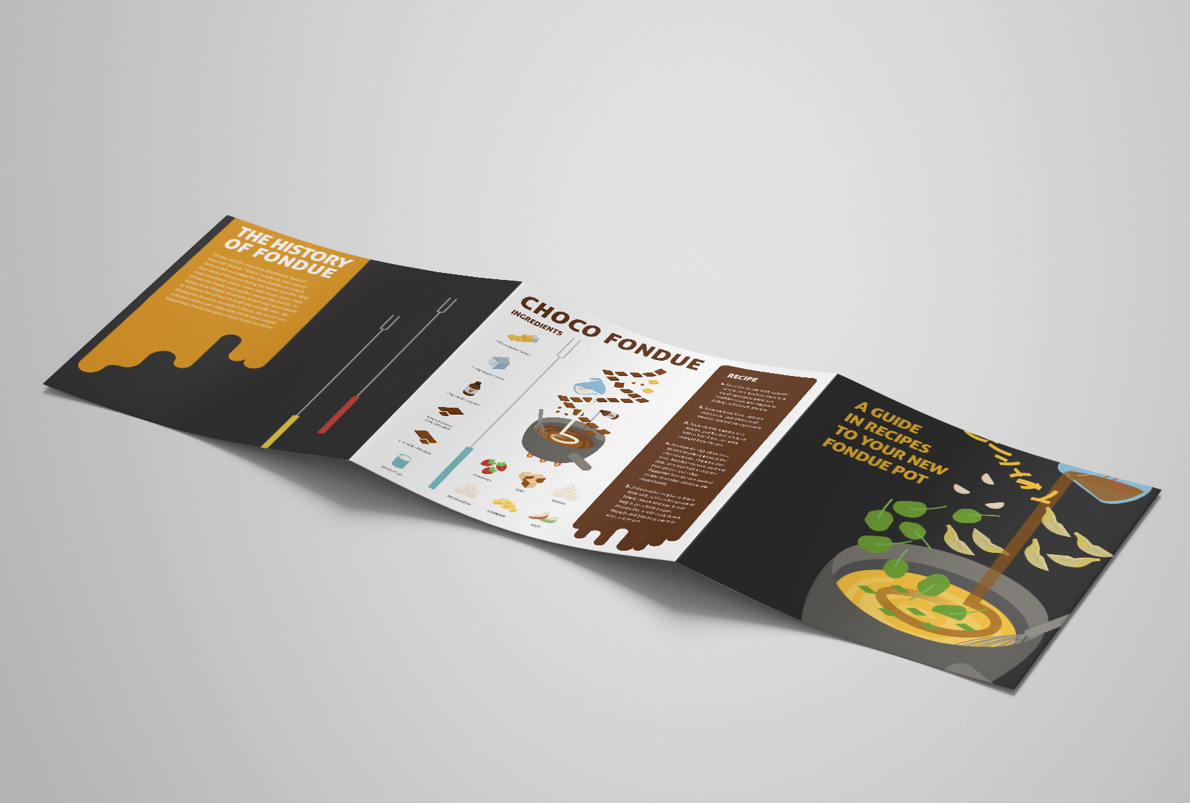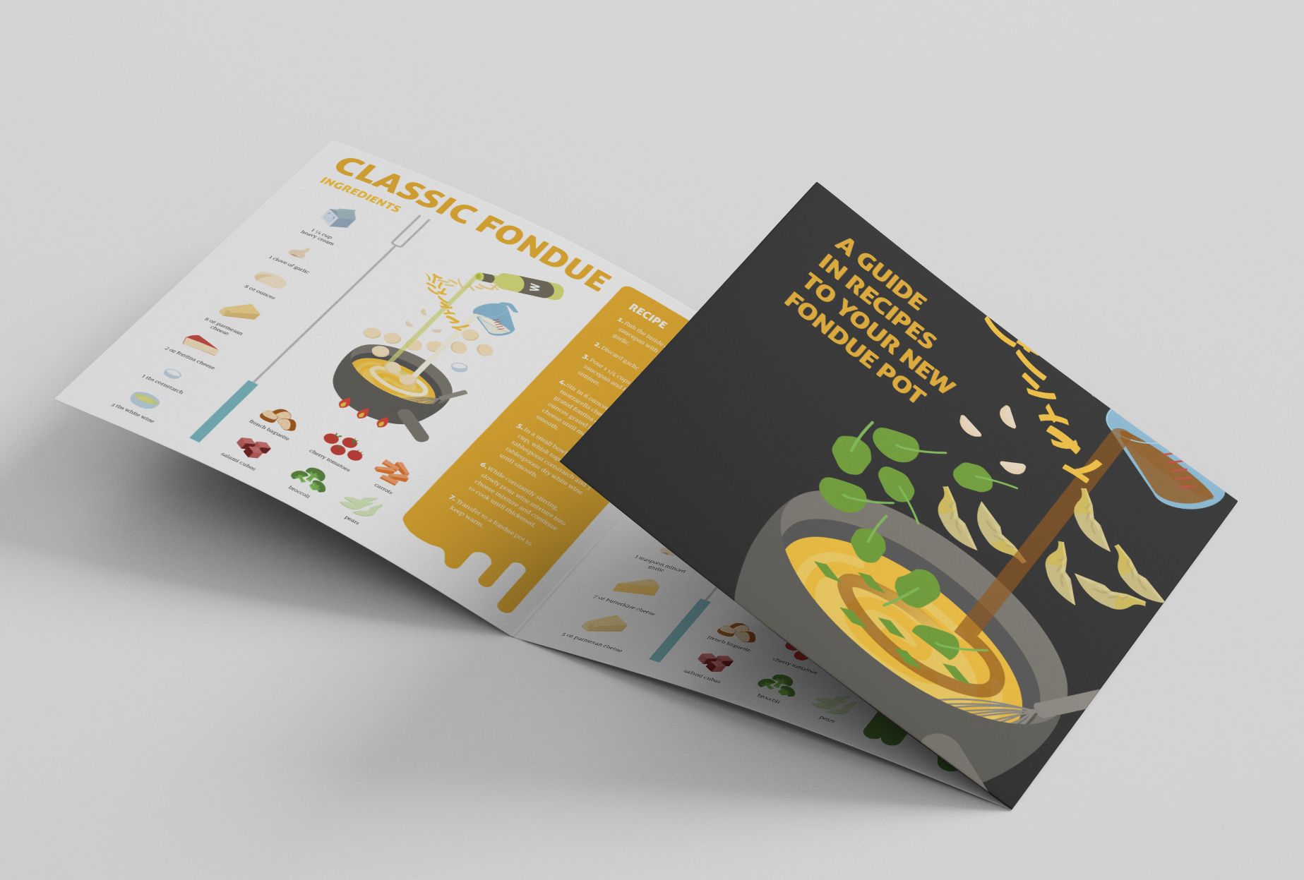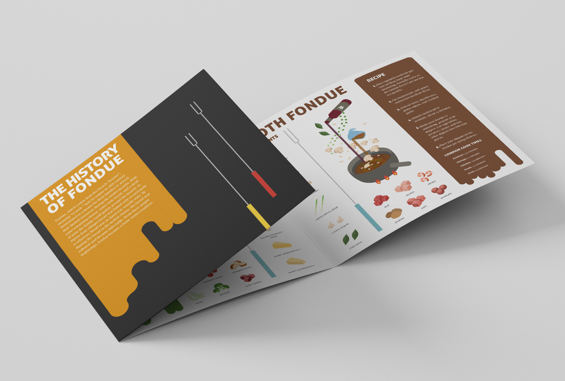 The brief for this project was to "Take something apart." I deconstructed the process of making fondue and made it into a booklet. The booklet is intended to be put into the packaging of a new DIY fondue pot as a quick reference for recipes.